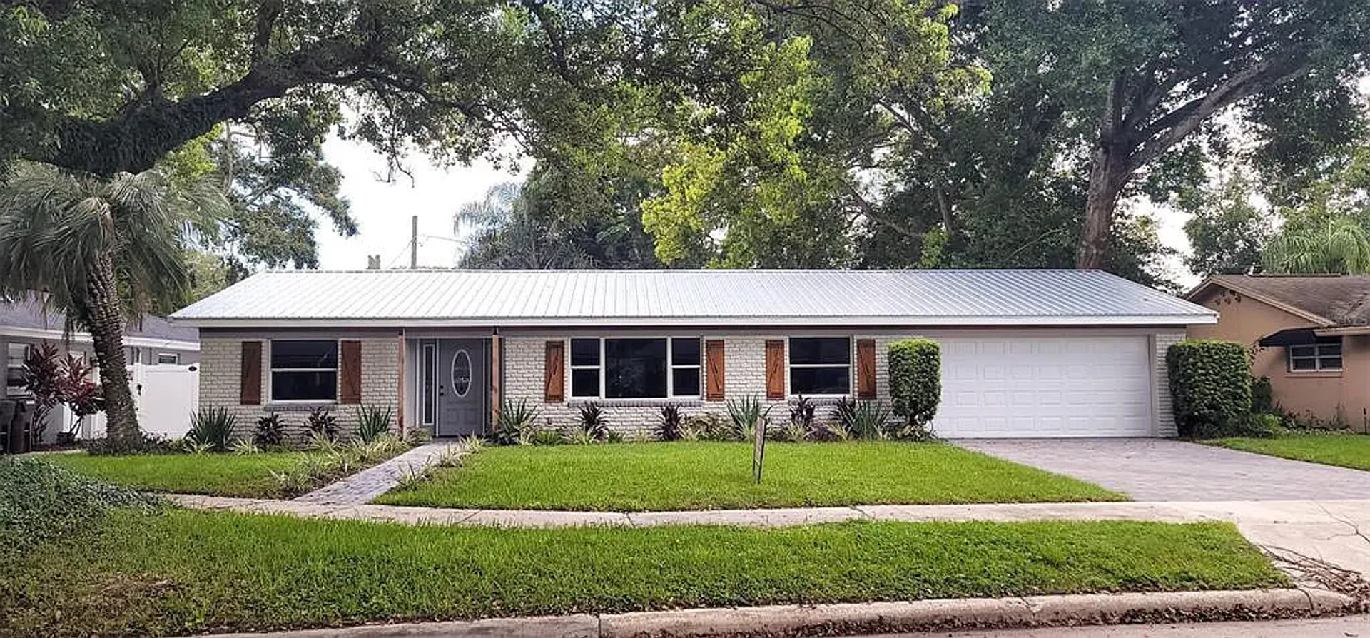 One or more photo(s) has been virtually staged. Come take a look at this recently renovated home. Start with the home's exterior renovations, including the metal roof with new aluminum soffit w/recessed lighting, white washed brick exterior, and cedar shutter accents and columns that add charm and character to the property. Inside, the open and flexible floor plan, along with the craftsman-style moldings, gives the interior a modern and stylish touch. The primary suite with a walk-in closet and luxurious ensuite bath is undoubtedly a great feature, providing a private and comfortable retreat. The updated kitchen with stainless steel appliances, white granite countertops, and a large walk-in pantry is a chef's dream. Having a Florida Room/Game Room with triple sliders leading to the backyard is perfect for enjoying Florida's sunny weather and entertaining guests. And all the extra bedrooms are generous in size including the 4th bedroom that can be used as the perfect home office for the telecommuters out there! Enjoy access to Lake Arnold located less than a block from the home where you can fish, canoe, paddleboard, or have a picnic-- a fantastic bonus, offering additional recreational opportunities close to home. Highlights include: newer A/C, LVT Waterproof flooring makes the floorplan flow, 5" base and 4" molding, 4" LED high hat lighting throughout, new interior and exterior doors and hardware, all new kitchen from appliances to granite countertops, new main electric panel and more!!! Ideally located minutes away from downtown Orlando's diverse dining, shopping, entertainment, great schools and all major roadways. Schedule your private and safe tour today!